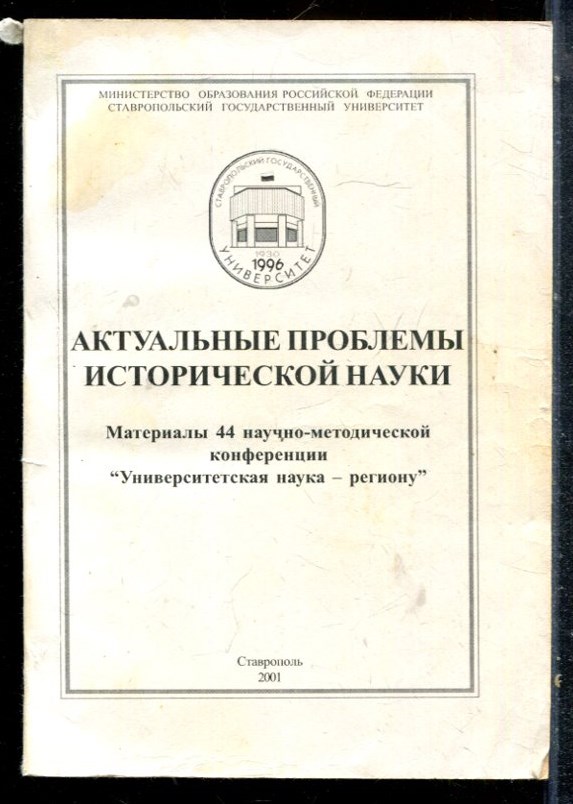 Актуальные проблемы исторической науки | Материалы 44 научно-методической конференции. "Универсальная наука - -региону". 2-30 июня 2005 г. - 2001